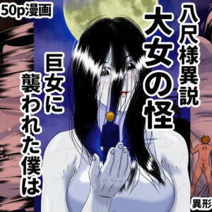 委員会の仕事ですっかり日が暮れた帰り道 僕は気がつくと月あかりだけの広大な暗闇となった農地で迷ってしまった。 そして這い寄る巨大な影。それは例え用もない大きな白い肌の黒髪女だった。 恐怖に駆られ泣き出し漏らす僕。それを見て面白がり、もて遊ぶ大女。次第に僕はその行為に体が反応して自らも大女の身体にチャレンジ!体格差の激しい二人はいつしかその行為に夢中になっていく。 しかしその二人を闇から見つめる目…… それは強大な力を持つこの土地の神だった。二人の間に割って入り、大女を手篭めにしようと襲う。 応戦する大女だが、初めて自分より巨大な敵に襲われ恐怖の感情に飲まれそうになる。 傍観するしかない僕は大女に声援を送るしかなかった。 少◯と大女、心の通い合った二人は生き延びる事が出来るのか 巨大ヒロインピンチとホラー怪奇系の融合で生まれた異形の女神シリーズの新作である本作は、八尺様伝説をベースに女巨人x人間、女巨人x怪獣を新たな切り口で描いた新しい物語。サイズフェチ体格差好きにもオススメしたい作品です。 本編50p さらに特典として今作のベースになった短編(恐怖のキョーコさん)6pを 付属して、合計56pのボリュームになります! 広大な田舎の農地の暗闇で繰り広げる、 僕と大女の10倍近い体格差の愛の営み。 そして人智を超えた化け物同士の戦い。 強者が敗者をなぶり、犯し尽くす弱肉強食の物の怪の世界