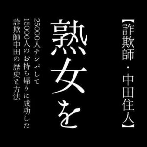 【詐欺師・中田住人】熟女を25000人ナンパして15000人のお持ち帰りに成功した詐欺師中田の歴史と方法 ある裏のコミュニティーを騒がせていた男がいた。彼は熟女を25000人もナンパし、そのうちの17000人のお持ち帰りに成功したという驚愕の数字を誇っていた。しかし、実はその男がただのナンパ師ではなく、詐欺師でもあることを、まだ誰も知らなかった。 彼は一見、普通の地味な男性と変わらない平凡な容姿をしていた。しかし、その魅力は何者にも変えがたいものがあった。彼の話術は巧みで、熟女を魅了する力を持っていたのだ。そのため、熟女たちは彼に惹かれ、彼の甘言を疑うこともなく彼と関係を持ってしまっていたのだ。 この男の成功の秘訣は、相手の心理を読み取り、その欲望を刺激することにあった。彼は熟女たちの心の奥底に秘められた性的な欲望を見抜き、それに応えることで、熟女たちを虜にしていった。その手法はまさに詐欺師のそれであり、彼の真の姿を知らない熟女たちは、彼のその魅力にコントロールされ堕ちていくことになる。 ここから、中田の正体を明かしていきたいと思う。
