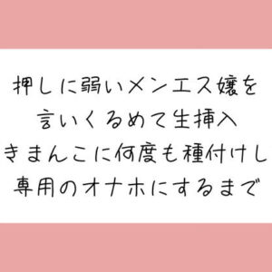 押しに弱い新人メンエス嬢、みこちゃんとのお話です。(【Day1】と【Day2】の2作品で構成されています) 【Day1】 まだ慣れてなくてドキドキしながら出勤。今日は指名のお客様が来てくれたの。 優しそうな良い方で、こういうお店にも慣れてるみたい。 緊張しながらマッサージしてたら、お客様興奮しちゃったのかだんだん肌に触れられるようになってきて。 「お触り禁止ですよ」って注意したんだけど、こんなの他の子も普通にやってるよ、と言われたらなんだか拒みきれなくて。 言われるがまま、おっぱい当てながらマッサージ。 必死に動いてたらマイクロビキニから乳首はみでちゃったり…めっちゃ恥ずかしかった。 うつ伏せでマッサージするのから始まって、その後は仰向けで鼠蹊部をほぐすように指示されて施術してたら、 お客さんのおちんぽが勃っちゃってるの。 反応に困ってたら、そのままよだれ垂らして手コキするように言われて、 今後のために、って気持ちい触り方とか教えてもらって。 その後はシックスナインの体勢になって、クリで簡単にイカされてからはどんどんエスカレートしてきて、 パンツずらされておまんこ触られたり舐められたり。そのままおちんちんフェラしながらまたイっちゃった… 流れで素股することになって、腰持って無理やり擦られたらもう気持ち良すぎて。 ゴムないのに生挿入されるの、抵抗できなかった。 おっきいおちんぽを騎乗位で挿入。 初めは優しかったけどだんだんお客様のペースで下から力強く突き上げられてすぐにイっちゃった。 その後「中はダメです…っ!」って拒んでも、男の人の強い力で離してもらえなくて。 激ピストンでイってるまんこにそのまま中出しキメられちゃいました… こんなことになってちょっと怖かったしダメなことしちゃって反省してるんだけど、 お客様のおちんぽ気持ち良すぎて、また来てくれるの、期待しちゃってます… 再生時間:30分31秒 無料サンプル:4分(クリイキ、69で舐めながらイっちゃう、素股のシーン聞けます) 【Day2】 こないだはすごいことをしちゃったな、って反省してたら、またあのお客様からの予約。 今日はちゃんとマッサージに集中しようって心に決めて出勤したの。 上手になってるねって褒められて嬉しかったんだけど、すぐにおちんぽ大きくなってるの気付いちゃって。 勃起に気付かないフリして、真面目にマッサージをしようとしたんだけど、また流されちゃった…ダメな子だよね… この前教えられた通りによだれ垂らして手コキしてたら、 今日は気持ちいマッサージの方法教えてあげるよ、って今度は私がマッサージされちゃうことに。 実はあれから何度もこの前のセックス思い出してオナニーしてたんだけど、そのせいで全身敏感になっちゃってて。 「あれからずっと触ってほしかった」って欲しがってたこと認めさせられて、乳首とクリを沢山可愛がられてイっちゃった。 おまんこトロトロにさせられた後、今日は中に欲しくないの?って迫られて、焦らされて、 最終的に自分からお尻向けて脚開かされて「おっきいおちんちん、生で、私のえっちなおまんこに挿れてください」 っておねだりさせられたの。めっちゃ恥ずかしかった… バックで挿入して、最初からお客様のペースでガンガン突かれて、 「後ろから、思いっきり私のおまんこの中に精子出してください」っておねだりさせられながらすぐに中出しされちゃった。 もう終わりかなって思ってたら、射精した後のおちんぽ、一番奥にぐりぐり当てられて、 精子でいっぱいになったおまんこに種付けプレスで「子宮にください…!」って懇願させられながら、 もう一回中出しされちゃったの。 こんな気持ちいおちんぽ知らない。お客様のこと、ずっとずっと大切にするね。 再生時間:25分17秒 無料サンプル:3分(挿入シーンが聞けます) <クリエイター紹介> 「みこ」と申します。普段の活動はfantiaで行っています。 自然な展開やリアリティのあるエッチが好きな方へ。 即興セリフ+実演オナニーでの収録を主に様々な作品を作ります。 心も身体も気持ちよくなっていただけたらとっても嬉しいです。 <作品概要> ◆再生時間 55分 ◆Credit 企画/シナリオ/声優 : みこ